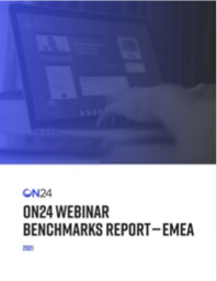 Download de ON24 Webinar-benchmarks: 2021 voor EMEA en krijg een kijkje op hoog niveau naar de best practices die webinars geweldig maken. Op basis van gegevens van meer dan 17.000 ON24-aangedreven gebeurtenissen over 2020, leert u in dit rapport: