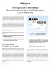 Simpel gezegd, de sociale media -strategie van Balmain is entertainment. Het revolutionaire Parijse merk luidde sinds het midden van de eeuw een nieuw tijdperk in en blijft de lat hoger leggen voor luxemerken als een creatieve pionier. Balmain boeit het publiek met een strategie die is gebouwd voor het tijdperk van sociaal entertainment, begrijpen wat er nodig is om betrokkenheid bij de volgende generatie sociale media te stimuleren, waar gerichte advertenties afnemen en boeiende doelgroepen met kwaliteitsinhoud Supreme zijn.